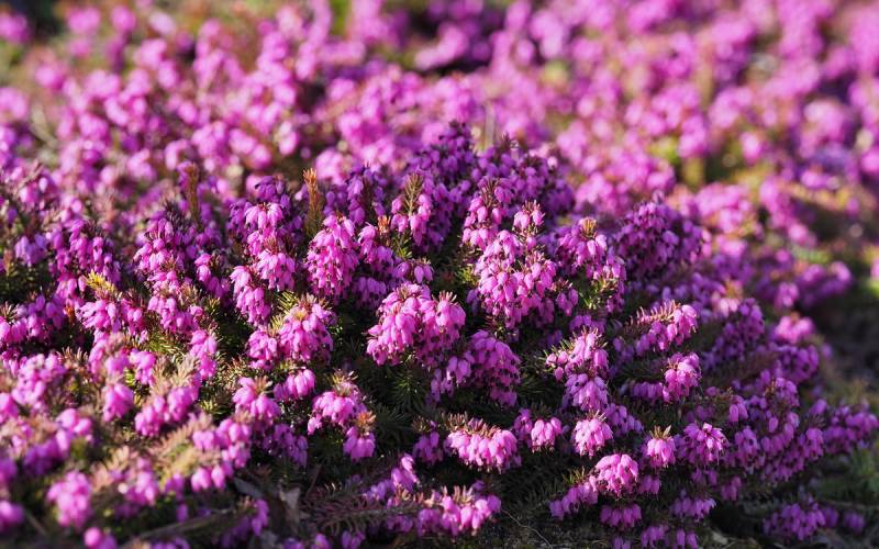 Bardzo obficie kwitną przede wszystkim wrzośćce, które wyglądają aż nienaturalnie.