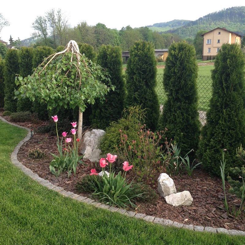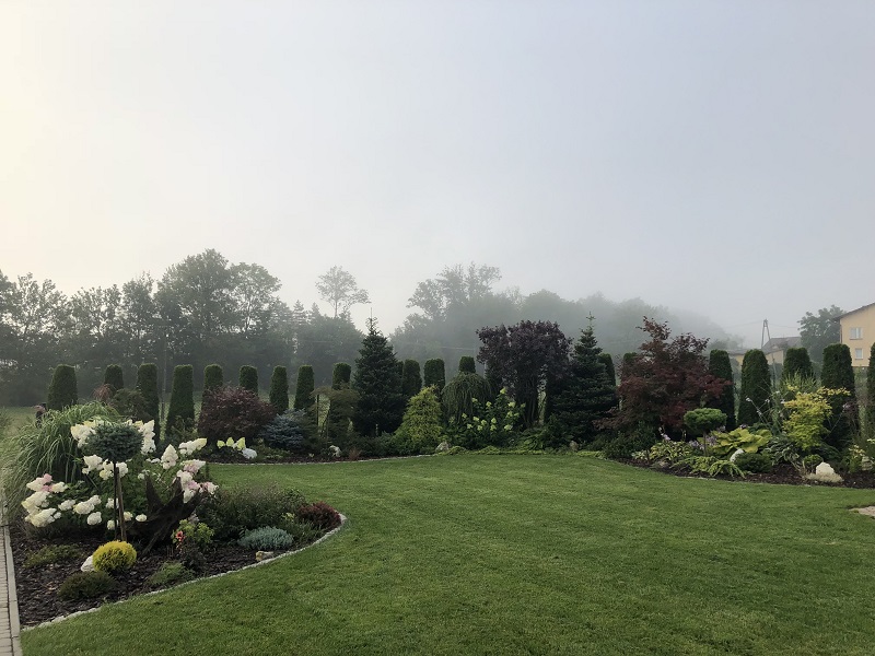 Chyba w 2010 roku , żeby przynajmniej trochę odgrodzić się od koszmarnie mocno wiejących wiatrów, posadziliśmy prawie 140 thuj, a razem z nimi pierwsze drzewka i krzewy. I tak się zaczęło: sadzenie, przesadzanie, szukanie miejsca na nowości i po paru latach poszerzanie trawnika... a jakże to już też za mną