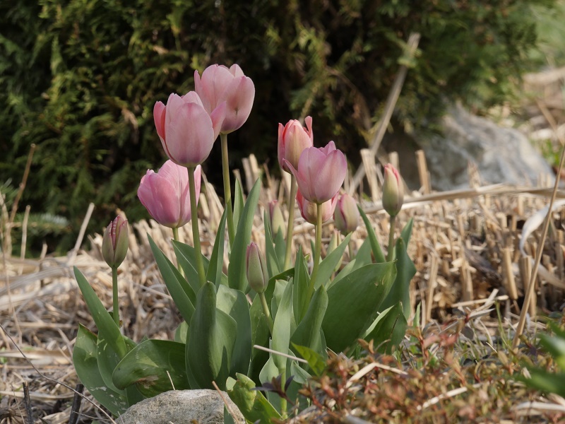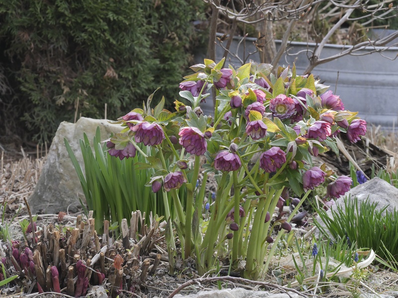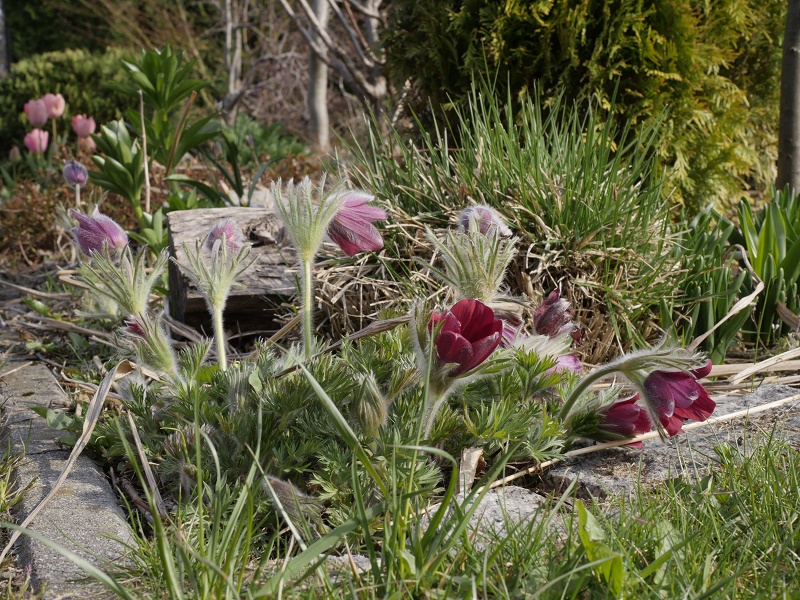 Monia zawilec już pomalutku traci ten swój młodzieńczy, ciemny kolorek ale dalej przyciąga wzrok... Na termomentrze wskoczyło jakieś -5... na szczęście rośliny pod workami dały radę... Nawet magnolia Mighty Mouse , z już pęknietymi pakami fajnie wygląda- dobrze, że taka mała. Jak pąki rodkowe przetrwały to zobaczymy za jakiś czas. Oby tylko już żadne mrozy nie przyszły. Najbliższe dni +20 to ruszy wszsytko z kopyta.