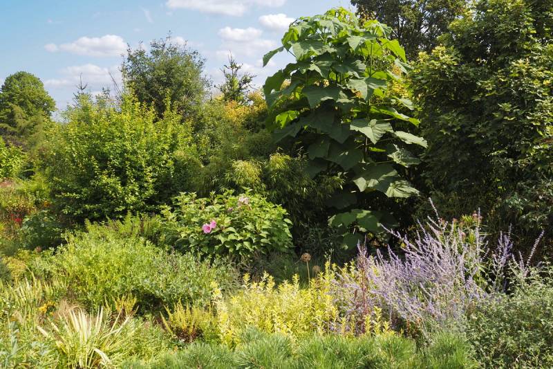 Gdy zawrócimy w stronę domu, znajdziemy się na terenie 'głównego' ogrodu i rozciągnie sie przed nami taki, kipiący roslinami widok...