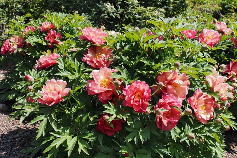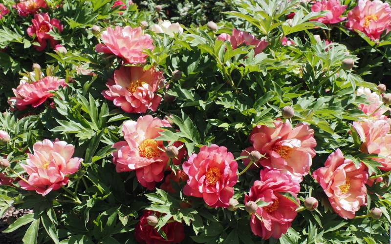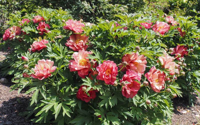 Naprawdę ładna piwonia ... kwiaty półpełne, a czasem pełne o ładnym kształcie. Kwiaty występują w wielu odcieniach:
