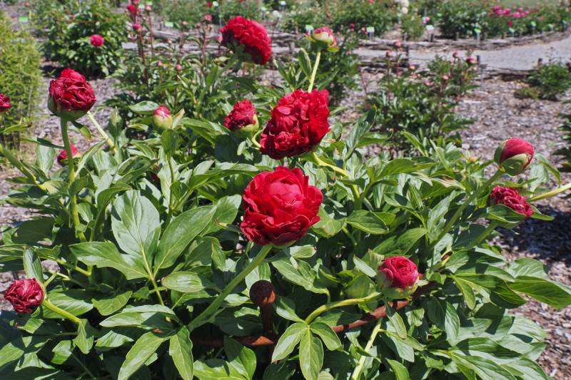 Hodowca: Henry Bockstoce (USA 1955) Kwiaty: pełne, mocno upakowane, jaskrawoczerwone o średnicy do 16 cm, płatki ułożone są w przepiękną rozetę tworząc niemal idealny kształt kwiatu, lekko pachnące Wysokość: do 85 cm Liście: złożone, skórzaste, ciemnozielone Pęd: w miarę sztywny, jednak pod ciężarem kwiatów może się pokładać Termin kwitnienia: początek czerwca Rodzice: krzyżówka P. officinalis z P. lactiflora