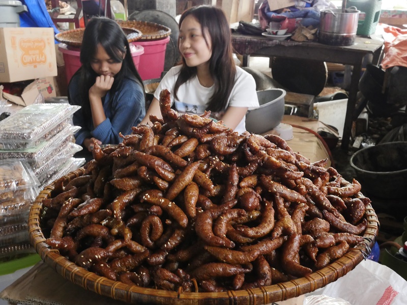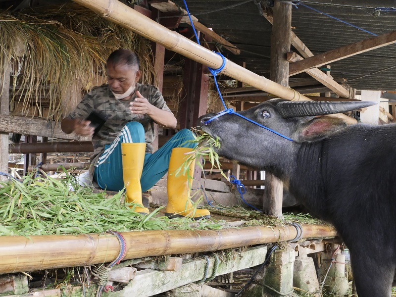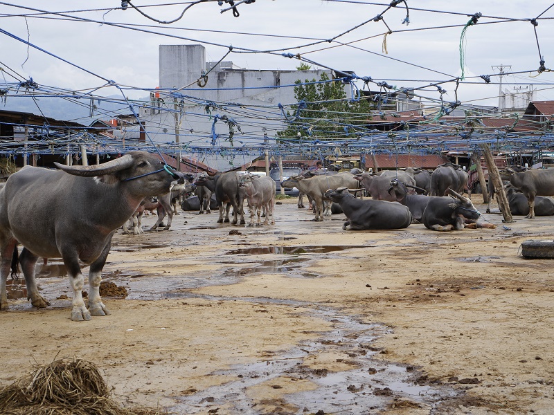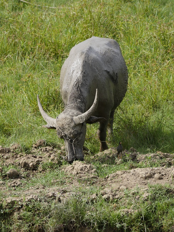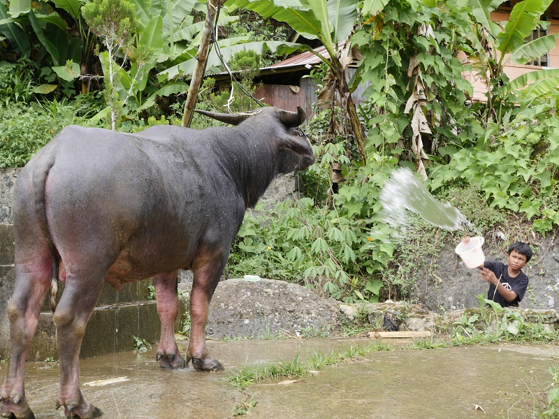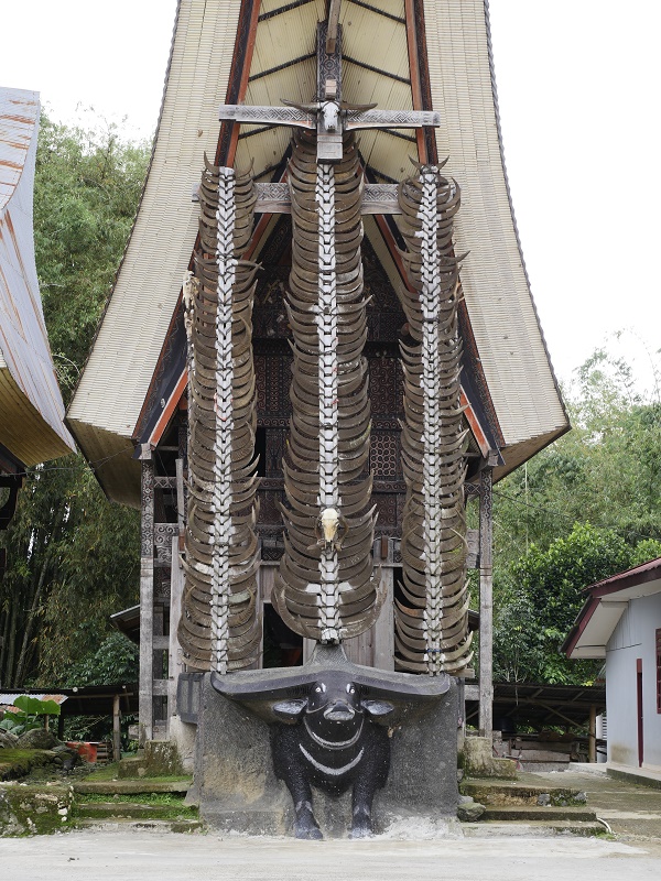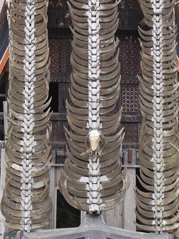 Bawoły to najwazniejsze, święte zwierze w tym regionie. To on przewozi chorego z ziemi do raju- podczas ceremoni bawoły są rytualnie zabijane, mięso zjadane, a rogi wieszane prze domami na specjalnych postumentach , a ich ilość świadczy o statusie mieszkańców domu. Jeżeli podczas ceremoni pogrzebowej, poświęconych zostanie co najmniej 15 bawołów, przed grobem zmarłego można postawić jego drewnianą podobiznę naturalnej wielkości, zwaną TAU-TAU. Byliśmy w przcowni rześbiarza który takie podobizny rzeźbi.