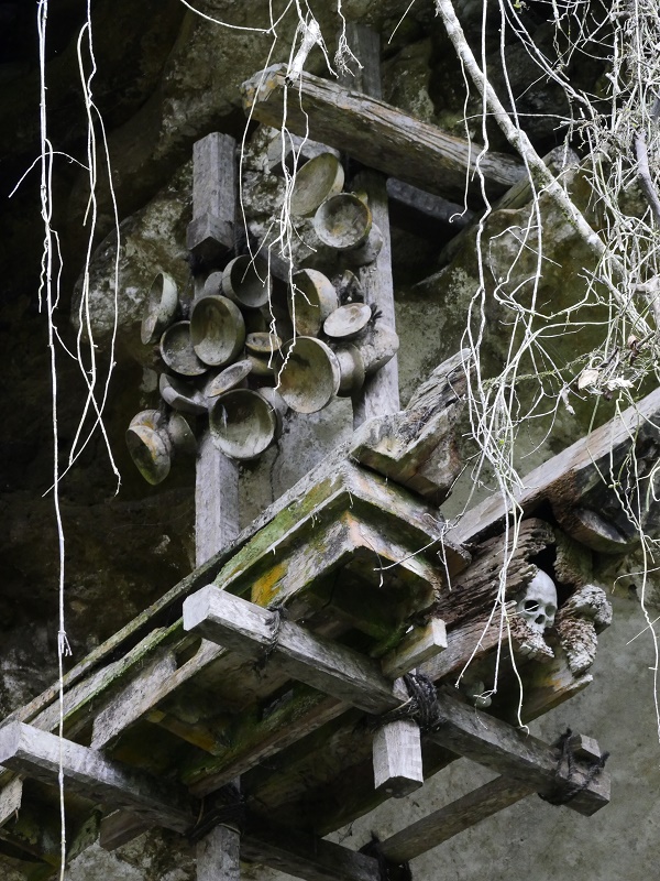 albo specjalnie wykute w skałach "pokoje" - im wyżej taki pokój jest usytułowany tym osoba zmarła miała wyżesze poważanie wśród społeczności.
