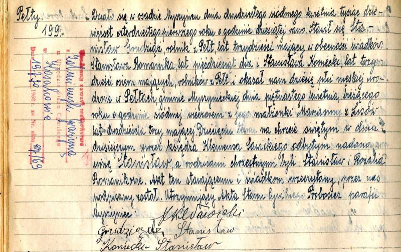 Udało mi się zdobyć skan aktu urodzenia taty, to najcenniejszy dla mnie papier jaki posiadam. Pod aktem podpisał się mój dziadek jako Grudziądz i tak podpisywał się zawsze.