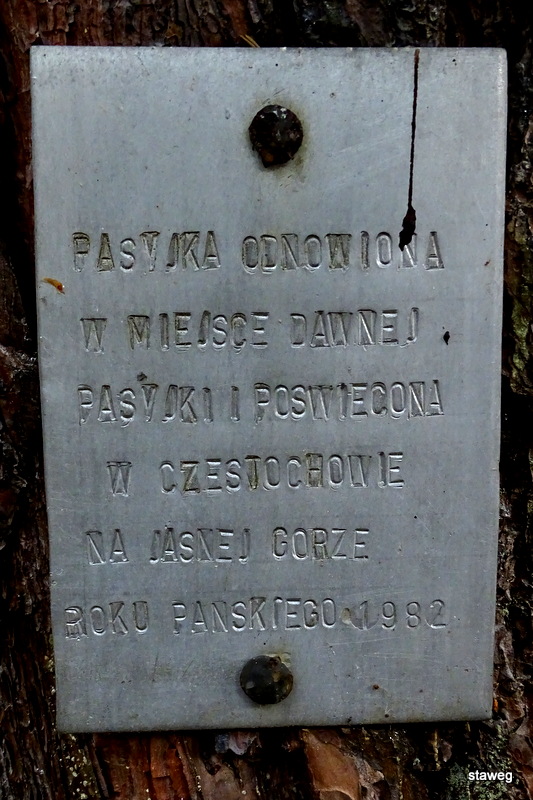 Pisząc o kapliczkach w lasach pomiędzy Budami Łańcuckimi a Żołynią wspomniałem o pewnej tajemniczej sprawie. Otóż, mniej więcej w połowie drogi pomiędzy kaplicą Św. Antoniego, a kaplicą Św. Huberta odchodzi droga leśna w kierunku Korniaktowa Płn. Przy tej drodze, na leśnym dukcie wiodącym na niewielkie wzgórze ktoś nieznany, wiosną 1992 r. umieścił kapliczki Drogi Krzyżowej. Są to kapliczki nadrzewne, rodzaj dużych pasyjek.