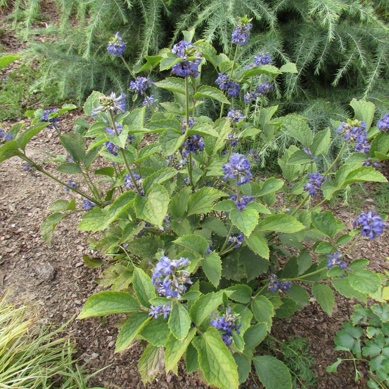 ), zatem niczym niezabezpieczona doniczka (nieduża, plastikowa) została na zewnątrz. Na wiosnę okazało się, że roślina dzielnie przetrwała trudy i zaniedbanie i pomimo to odbiła mocnymi pędami, oprócz tego mocno się rozkrzewiła więc czym prędzej dostała większą donicę. I teraz tak, rośnie bardzo silnie, w górę na ponad metr, ale i podobnie na szerokość, pędy są mocne, sztywne, nie wymagające podpór. U mnie stoi obecnie na szczycie pagórka przed domem, ma więc słońce prawie cały dzień. Nie przeszkadzają mu silne ostatnio wiatry, ani kotłujące się obok jego donicy psy. Sporo pije, ale nie jest nadwrażliwy na brak, kiedy ma za sucho widać po liściach, tracą wigor, ale szybko się zbierają po podlaniu. Generalnie polecam jako zupełnie niekłopotliwą, a robiącą wrażenie bylinę, Szybko zrobi efekt, zarezerwujcie mu jednak sporo miejsca. Kwiaty są nieduże, ale dość liczne, teraz zaczyna kwitnienie.