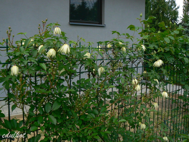 U mnie rozlazł się pojedynczymi pędami po płocie. Kwiatów niewiele.