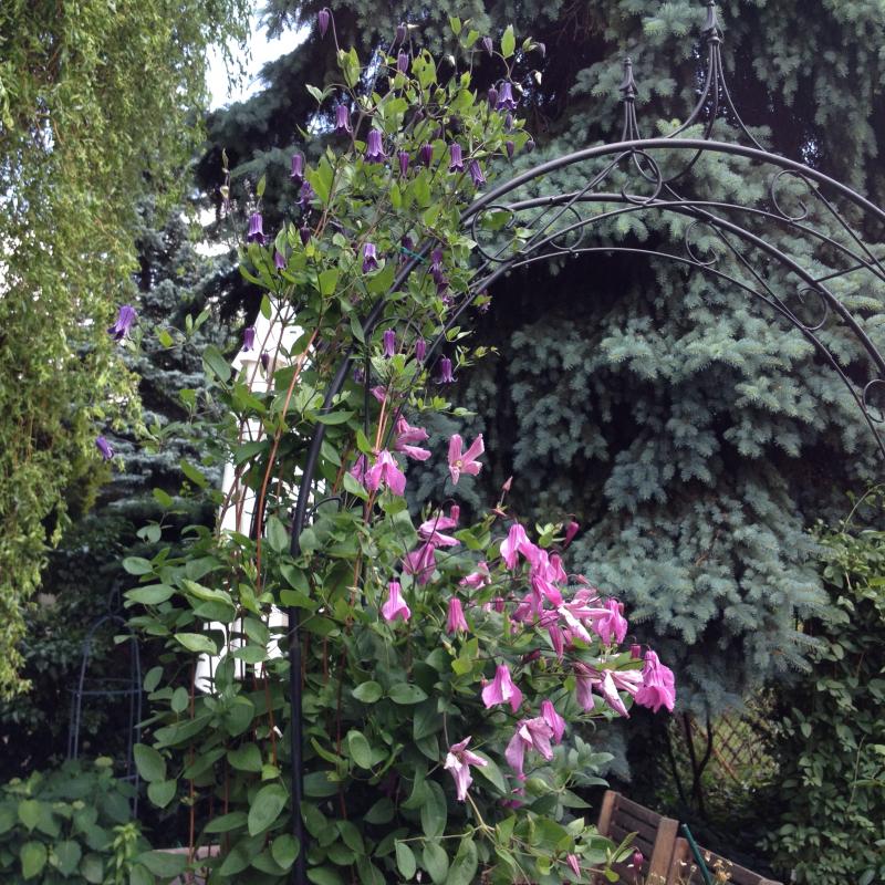 Mam ten powojnik chyba z 8 lat. Początkowo miał kupną, za niską niestety podporę i kiedyś burza zmiotła dosłownie całą kwitnącą górę. W następnym roku dostał podporę od kowala po róży i od tamtej pory żadnych problemów nie stwarza. Ma dużo miejsca i chyba nawet mączniak przestał go nękać, choć wcześniej chorował co roku.