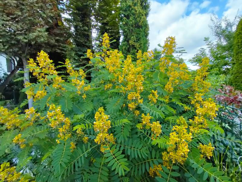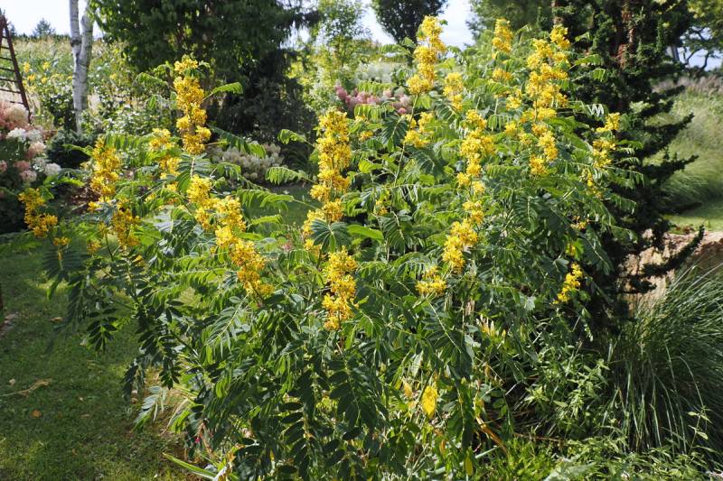 Ozdobny jest sam jej pokrój, jednak największą atrakcję stanowią grona żółtych kwiatów pojawiające się w drugiej połowie lata.