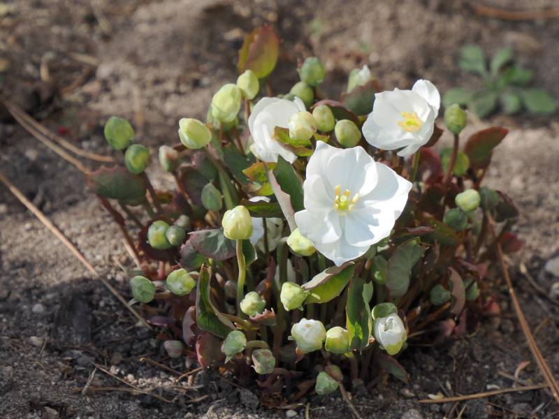Jeffersonia dubia 'Alba' już kwitnie ... innych jeszcze nie widać, ale ta rośnie w zacisznym miejscu przy południowej ścianie, więc ma bardzo cieplutko.