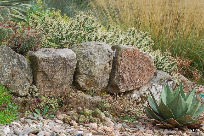 Pięknie skomponowane suche rabaty w Szkółce Grochowscy w Radkowie... Wśród roślin wielkie, zdrowo rozrośnięte kępy różnych opuncji , które nigdy - według słów właściciela - nie były przykrywane. Zdjęcia były robione 04.09.2016r, więc zamiast kwiatów, widzimy zawiązane owoce.