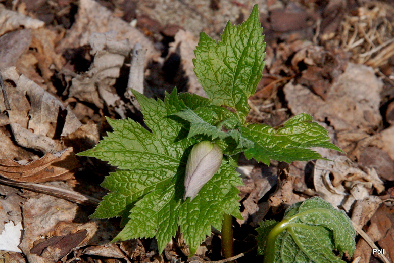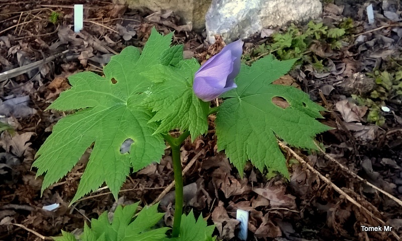 Dziś oje Glaucidium palmatum już pewnie kwitło, bo w piątek (20.04) miało już wyraźnie wykolorowane pąki kiatowe