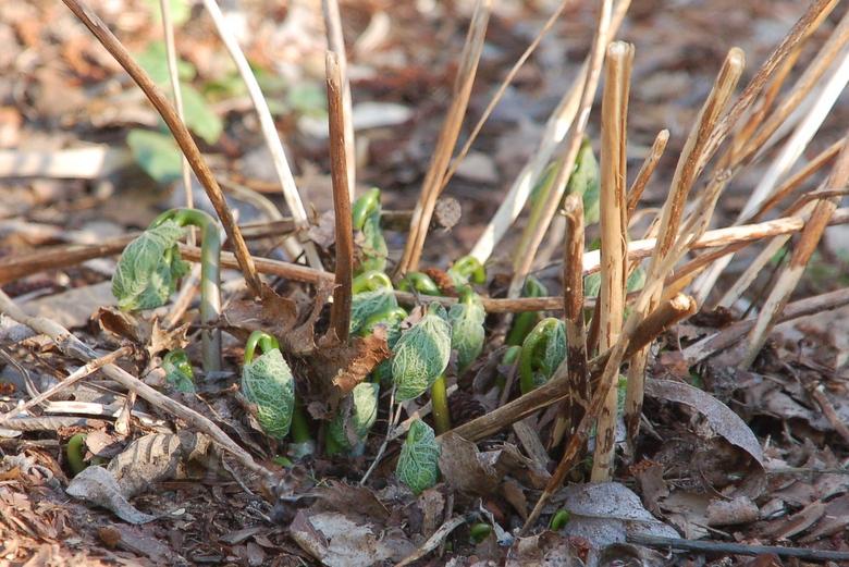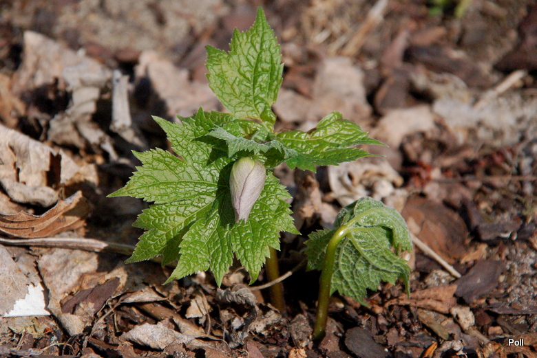 U mnie w ogrodzie Glaucidium palmatum także wystartowało, ale jest mniej zaawansowane w rozwoju. Pod koniec ubiegłego sezonu przeniosłam je na bardziej osłonięte i cieniste miejsce, gdzie później wszczyna wegetację