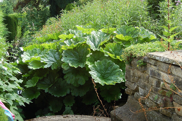 Darmera peltata w ogrodzie Neila Timma (Ferns Garden) w UK. Rośnie tu nad strumieniem, niemal z 'nogami' w wodzie.