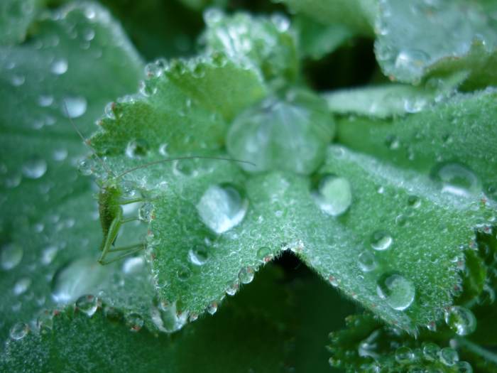 I to co najpiękniejsze- plisowania na młodych liściach i krople rosy.