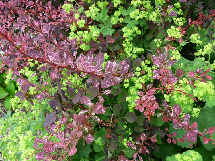 A tutaj jako wypełnienie miejsca z z berberysem i irysami