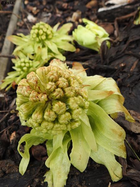 Kogo - jak mnie - nie przeraża ta cecha, znajdzie w lepiężniku wdzięczna roślinę do nasadzeń nadwodnych ( może rosnać także w kilkucentymetrowym zatopieniu), która nie wymaga jakichkolwiek zabiegów pielęgnacyjnych ... prócz ewentualnej ochrony przed ślimakami, dla których stanowi wielki przysmak . Ciekawą cechą lepiężnika jest pojawianie się wczesną wiosną kwiatów a dopiero potem i w nieco oddalonych miejscach, liści. U mnie, pierwsze pąki zauważam już na początku marca i jeśli przedwiośnie jest dość ciepłe, już w kwietniu pąki rozwijają się w kwiaty. Niestety, niesprzyjająca aura z przymrozkami w naszym klimacie hamuje zazwyczaj rozrost pąków i często je uszkadza.