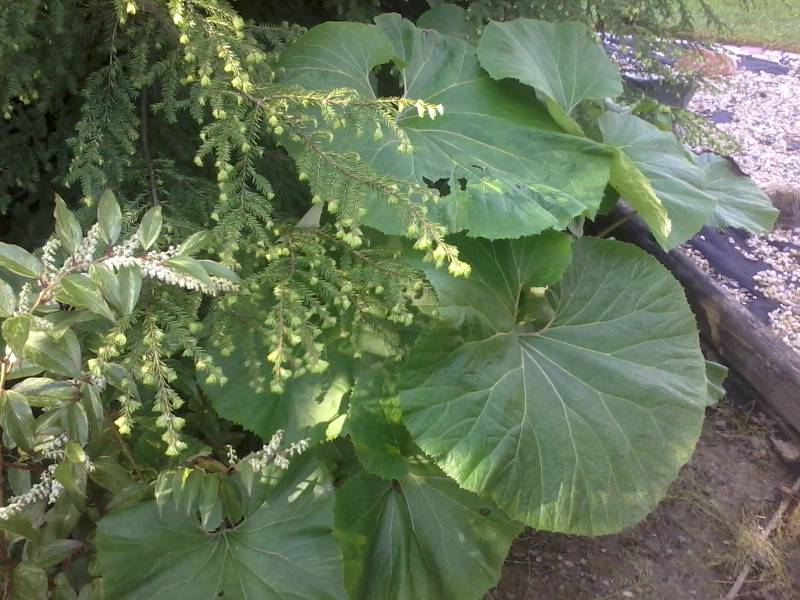 giganteus , tak poprawnie brzmi nazwa tego roślinnego giganta, który wyglądem przypomina nieco rabarbar, czy nasz rodzimy, ale wyrośnięty łopian. Charakterystyczne, okrągłe liście sa dobrze widoczne z daleka, gdyż osiagają, jak i cała roślina , naprawdę olbrzymie rozmiary.