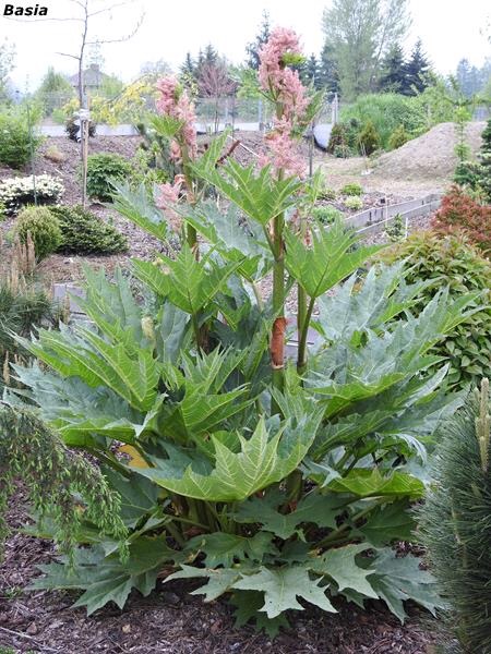 Mój rabarbar dłoniasty rośnie na hostowisku od co najmniej 6 lat . Nigdy nie zawiązał kwiatów i po wypuszczeniu kilku wielkich liści, jest sromotnie podziurkowany przez jakiś podżeraczy. :glupek Może ma ciemno? Na jakich stanowiskach wasze rosną?