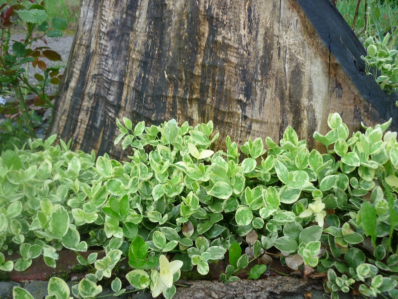 Mam słabość do barwinka i wydaje mi się, że nareszcie znalazłam sposób na to, by zachować przywilej kontroli nad sytuacją. Sadzę go na bruku lub tuż przy jego krańcach, może się wtedy rozbujać tak jak lubi ale dla mnie nieszkodliwie.