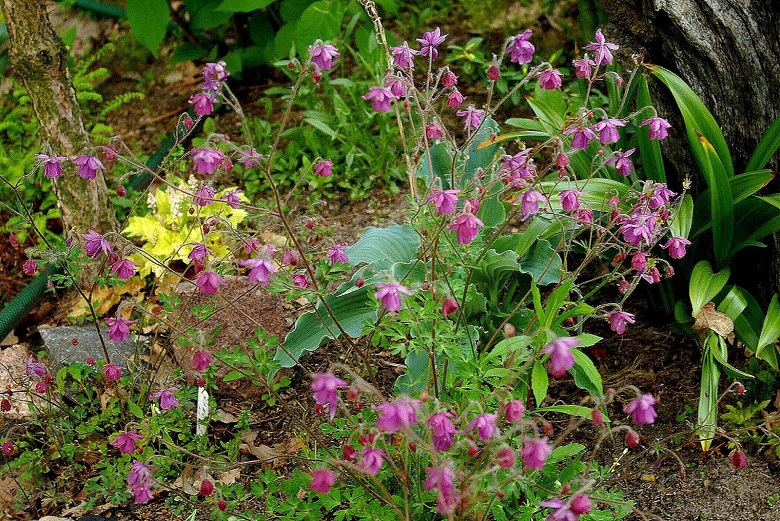 Mnie, bardziej przypominają listki kokoryczy. Szybko zaczyna wegetację i już w IV cieszy nie tylko niebieskawozielonym kolorem kęp, ale podziwiać możemy pojawiające się pędy kwiatowe, które w miarę wzrostu wypuszczają boczne odrosty, tworząc luźną wiechę . Pierwsze ciemnoróżowe kwiaty, nieco podobne do kwiatów orlika, ale sporo mniejsze i nie posiadające charakterystycznych ostróg, pojawiają się w moim ogrodzie już w ostatnich dniach kwietnia i przez cały niemal maj , rozwijają się stopniowo.