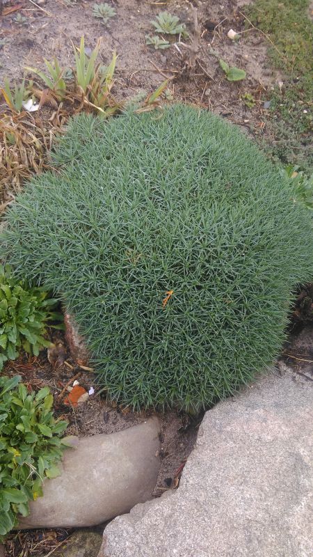 Jest to zimozielona krzewinka tworząca zaokrąglone poduszeczki w kolorze sino zielonym.