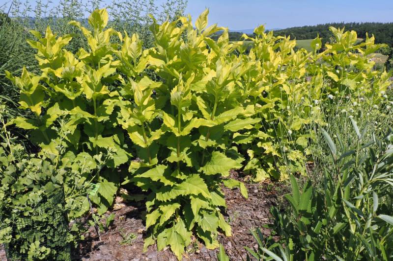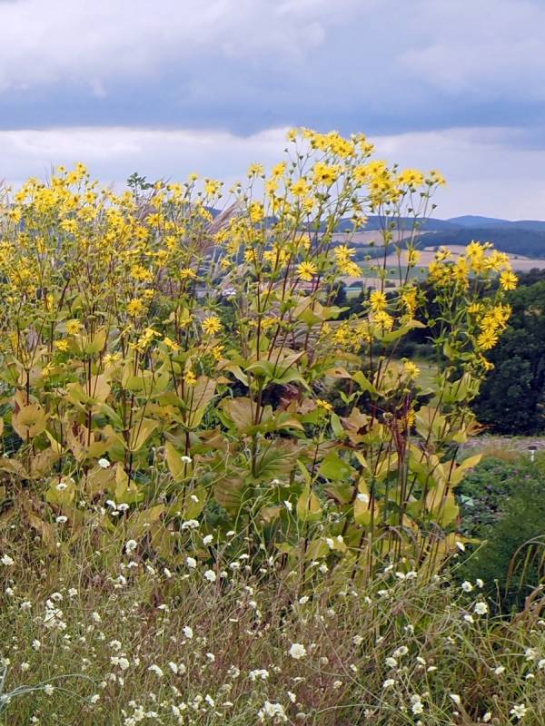 rożnik przerośnięty (Silphium perfoliatum) mający swoje siedliska na amerykańskich preriach. Lubi on dość wilgotne, nie przesychające i zasobne w składniki pokarmowe gleby a posadzony w takich miejscach potrafi bardzo obficie kwitnąć i osiągnąć wysokość nawet 250 cm. Okres kwitnienia przypada od przełomu wiosny i lata (k. czerwca) do początku października, albo i dłużej, w zależności od pogody. Pojedyncze kwiaty są żółte i mogą osiągać średnicę 6-8 cm. Rożnik przerośnięty jest uważany przez pszczelarzy za pożytek, ponieważ przez długi czas produkuje nektar. Wg źródła, którym jest portal pszczelarski.pl, jego tzw. wydajność miodowa wynosi 550 kg z jednego hektara pożytku.