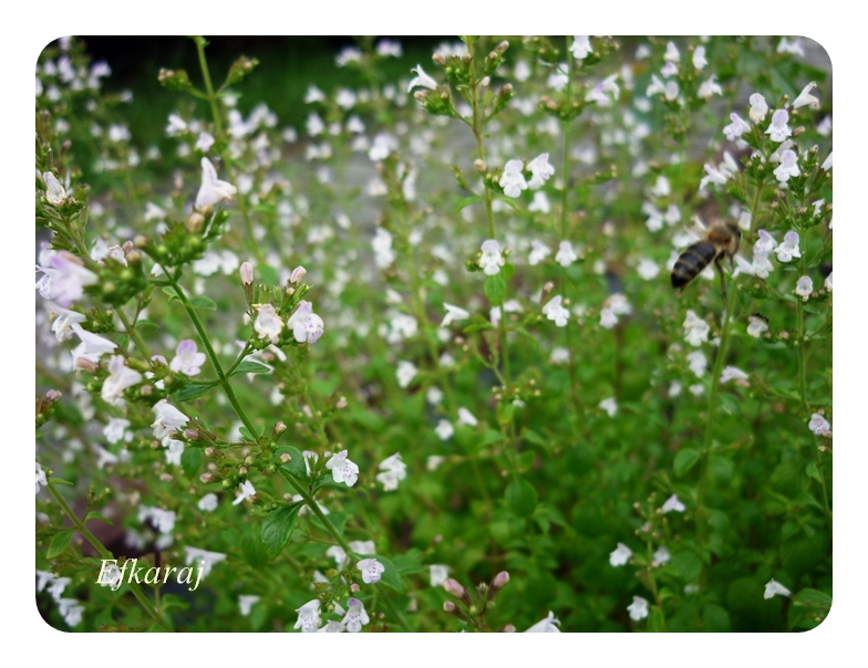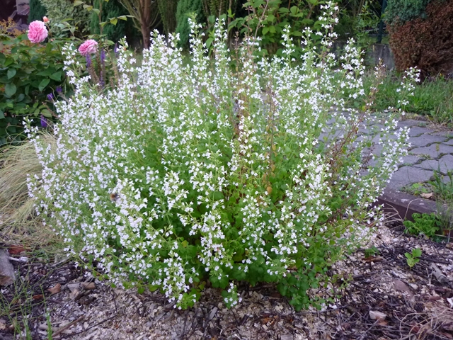 Kalaminta przywędrowała do mojego ogrodu kilka lat temu jako kocimiętka 'Alba'. Od pierwszego sezonu jednak wydawała mi się od kocimiętki inna. Kwiatuszki co prawda podobne, ale pokrój rośliny inny, liście mniej szorstkie, bardziej delikatne. W drugim sezonie po posadzeniu, zaczęła mnie czarować. Rozrastając się w bardzo zgrabną kopkę od lipca obsypana jest chmurką białych kwiatuszków, które zwabiają do siebie całe mnóstwo pszczół i motyli. Kwitnie nieprzerwanie do października i cały czas tak samo pięknie wygląda.