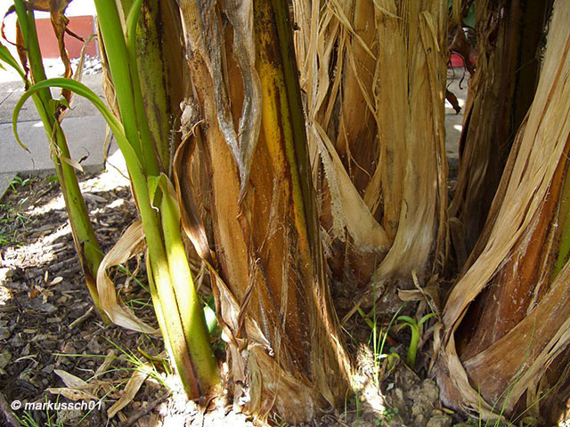 Po (około) czterech latach wydaje owoce następnie „pień” obumiera,to etap normalnego cyklu życiowego tej spektakularnej byliny w warunkach europejskich.
