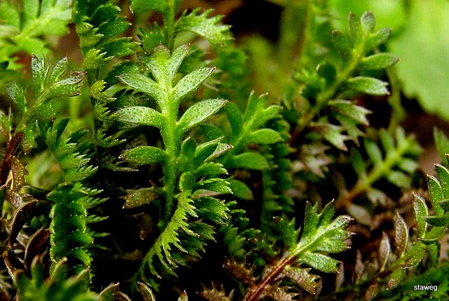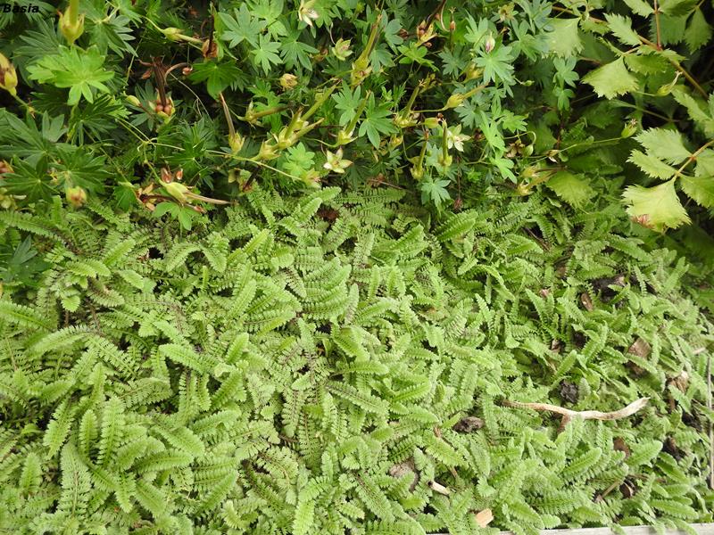 Liście pierzaste, przypominające niektóre krwawniki lub pięciorniki (np. srebrnik), zmieniające zabarwienie w zależności od nasłonecznienia i pory roku.
