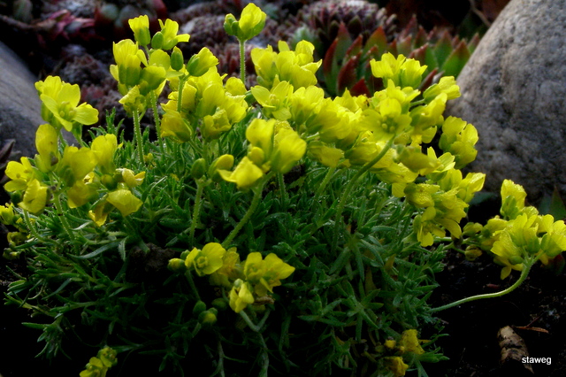 Trochę poszperałem i wychodzi mi na to, że rośnie u mnie Głodek kaukaski (Draba bruniifolia). Naturalnie występuje on w Armenii, Turcji i na Kaukazie.