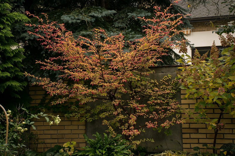 Liście wiosną jasno zielone, latem przebarwiają się w ogniście czerwony kolor.
