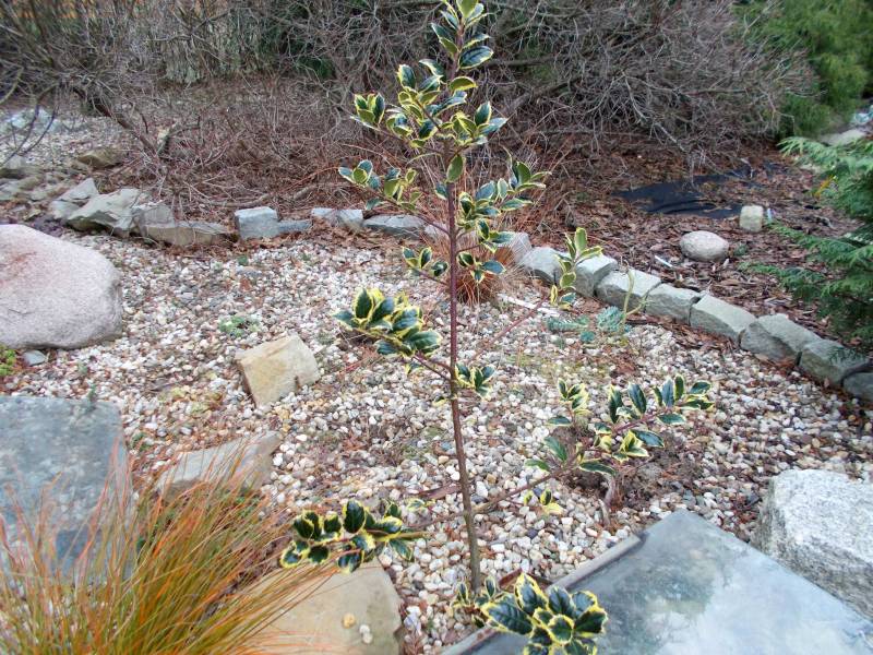 ostrokrzew , którego przez ponad 10 lat kosiłam do ziemi , bo wymarzał przez pierwsze lata więc został zapomniany ,ale chyba 3 lata temu zobaczyłam ,że coś wyrasta z ziemi między dwoma cyprysikami i przesadziłam w inne miejsce , liście dosyć małe . Można powiedieć ,że ma 17 lat :)