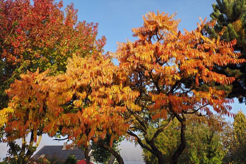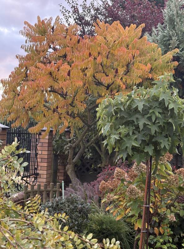Najlepiej jak nie będę zaglądać jesienią do tego wątku, bo żal d... ściska U mojego 'Tiger Eyes' brązowe liście już smętnie zwisają (zresztą jak co roku) Tylko na końcach gałęzi widać jakiś jesienny kolor
