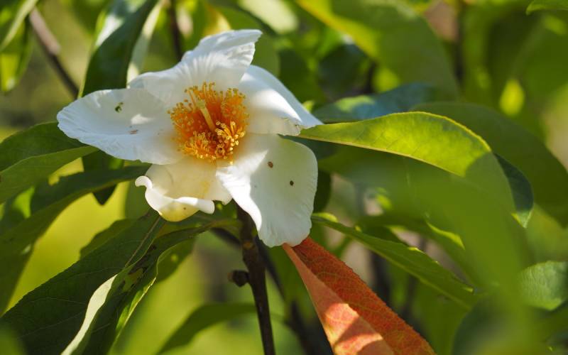 Moja franklinia zakwitła w tym roku wyjątkowo wcześnie, bo już w ostatnich dniach lipca