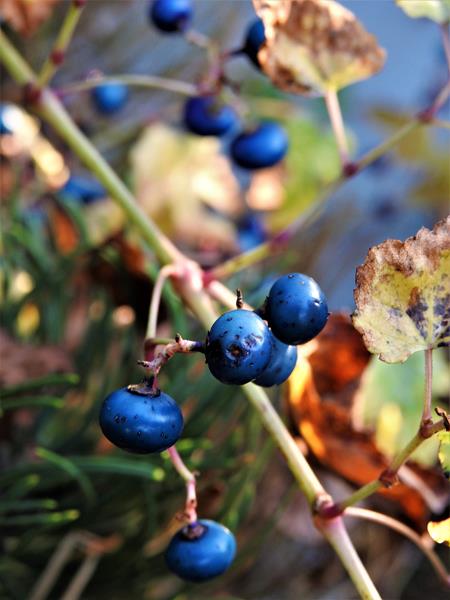Owoce:okrągłe, fioletowe i niebieskie jagody z kilkoma nasionami w środku