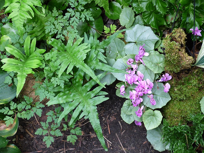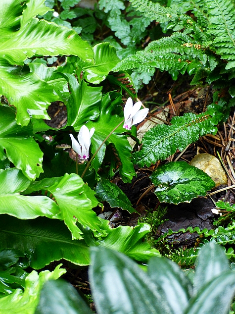 Pojawiły się natomiast liście i pierwszy kwiat cyklamenu cypryjskiego, ale i jego mus przesadzić, bo tego z kolei tłamsi konkretnie języcznik 'Cristatum'... stąd i sensownych zdjęć brak