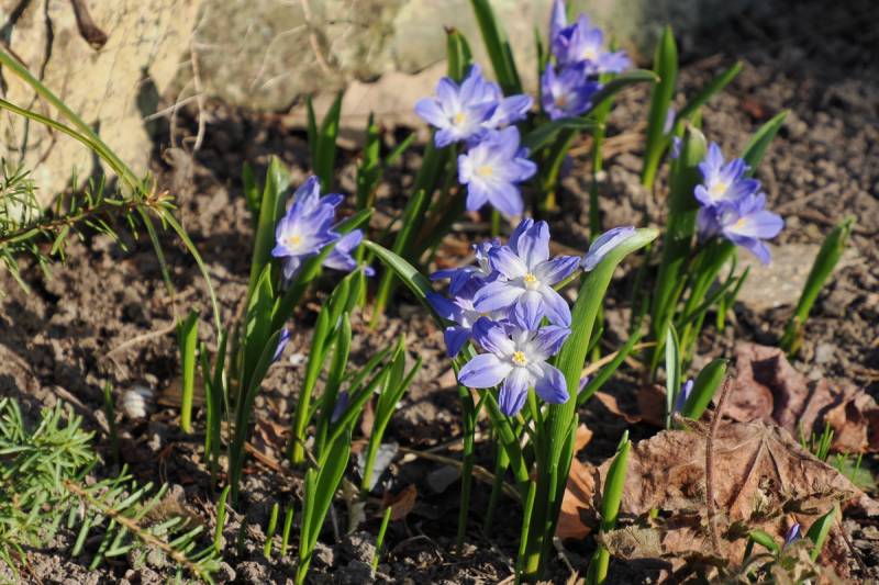 Niebieskich Śnieżników mam najwięcej i ciężko jest je od siebie nawzajem odróżnić. Odmiana 'Siehei' do złudzenia przypomina pospolite niebieskie Śnieżniki Lśniące i dopiero zaczyna kwitnienie w moim ogrodzie:
