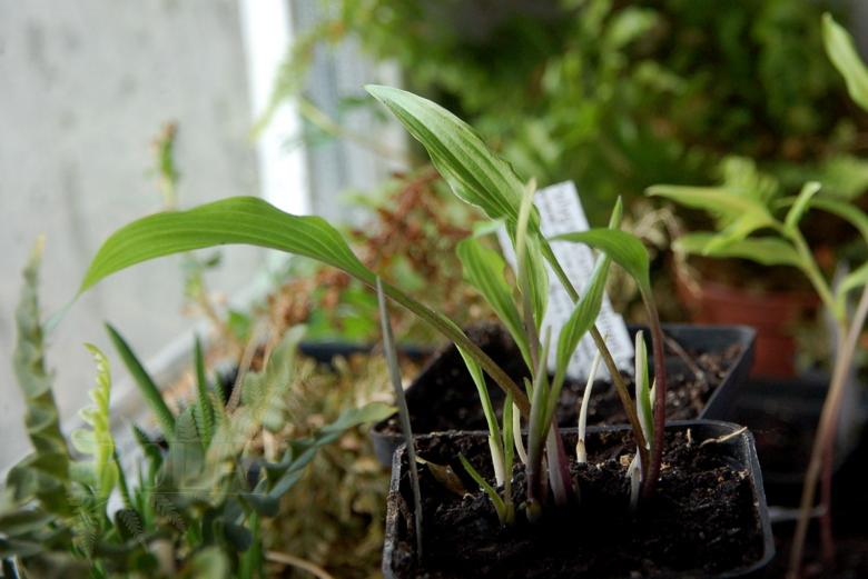 Okres zimowo przedwiosenny jest dla mnie bardzo depresyjny.Na działkach nic się nie dzieje i jest ponuro,na pierwsze kły hostowe jeszcze długo trzeba czekać,więc ja już od kilku lat uprzyjemniam sobie ten czas obserwacją host w domu.W styczniu przynoszę z działki do domu kilka(2-4) doniczek z zamrożonymi hostami.Po 2-3 dniach odmarzają na parapetach,podlewam je i zaczyna się przyjemność.Wierzcie mi,że to jest najlepsze lekarstwo na ten trudny okres do kwietnia.Hosty,jak tylko poczują ciepełko ruszają w drogę ku górze a dla mnie to niesamowita radość obserwować jak szybko zbierają się do życia