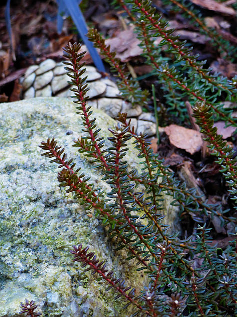 Pędy: młode wznoszące się, czerwonawe, nagie lub rzadko gruczołowato owłosione... starsze pokładające się, o łuszczącej się korze, czerwonobrunatne