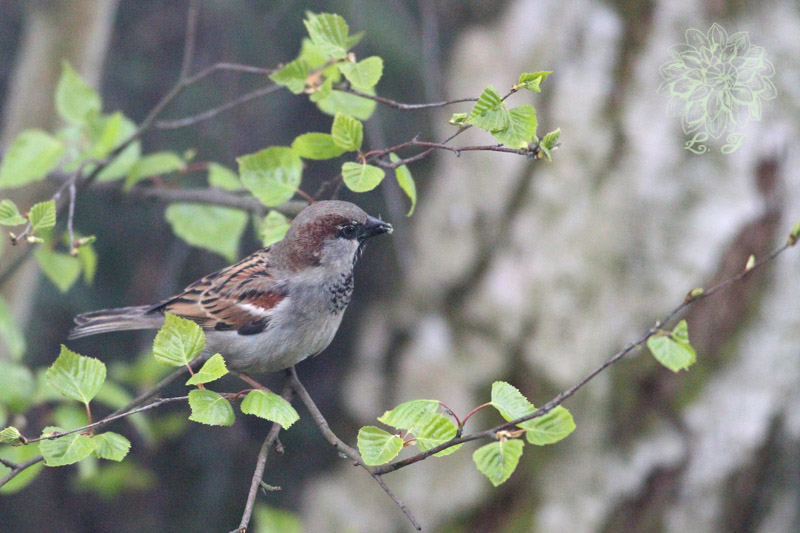 Mam kilka gniazd wróbli pod dachem. Trochę mnie to wkurza, że bałaganią, ale cały czas się krzątają w ogrodzie i zbierają owady. Tu akurat zbierał coś na brzozie.