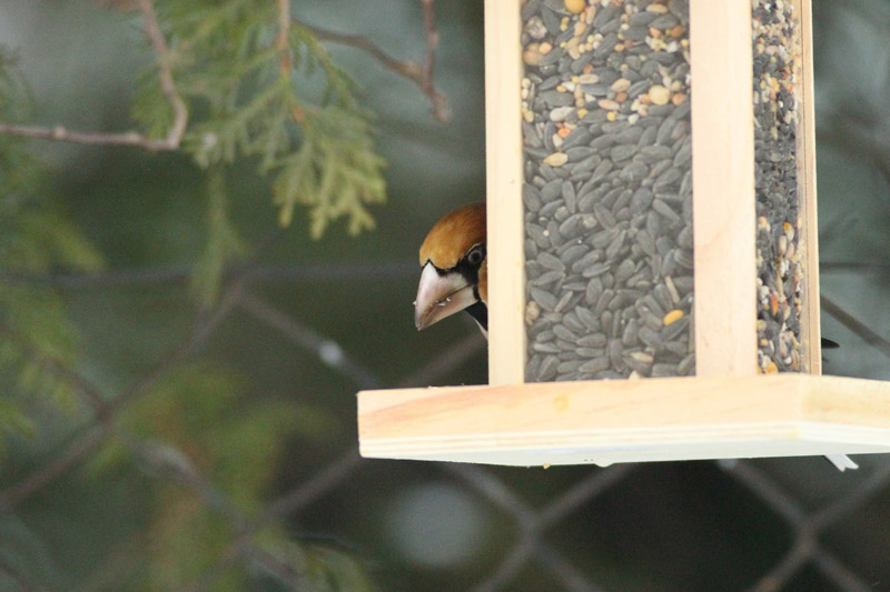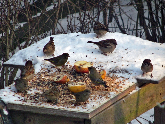 W ogrodzie zostawmy trochę winogron i innych owoców. U mnie chętnie żerują też na tujach (czyże, sikory), cisach (dzwońce, grubodzioby). Dobrze by w ogrodzie były słoneczniki, krzewy i drzewa wydające owoce smaczne dla ptaków: ligustr, jarzębina, dereń biały, kalina itp.