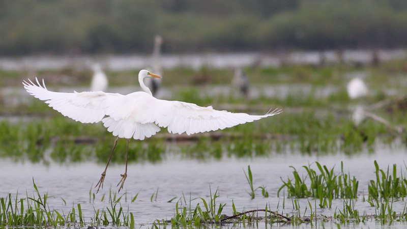 Mniej liczna w Polsce niż czapla siwa. Mniej jest tez jej lęgów na terenie Polski. Piękny dostojny ptak. Żywi się rybami, drobnymi zwierzętami, owadami. Obserwuję ja często i licznie w PN Ujście Warty, ale na innych terenach rzadka. Opisywałam przy okazji wpisu o czapli siwej, przygodę na płyciźnie nad Postomią. Czaple białe łowiły ryby, ale za duże ryby nie chciały przejść przez chude szyjki więc siwe podbierały pokarm białym. Oglądaliśmy ten spektakl przez dłuższą chwilę. Straszny hałas przy tym robiły!