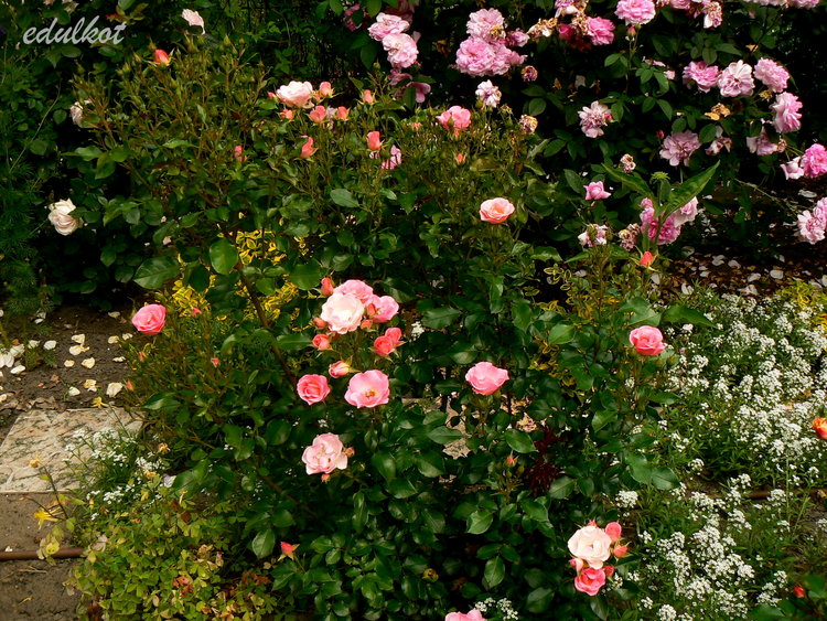 Kwiaty: pastelowo-różowe, półpełne z pofalowanymi płatkami, w kształcie miseczkowate (Ø: 4-5 cm) delikatnie pachnące, bardzo długo utrzymują się na roślinie, odporne na złe warunki pogodowe