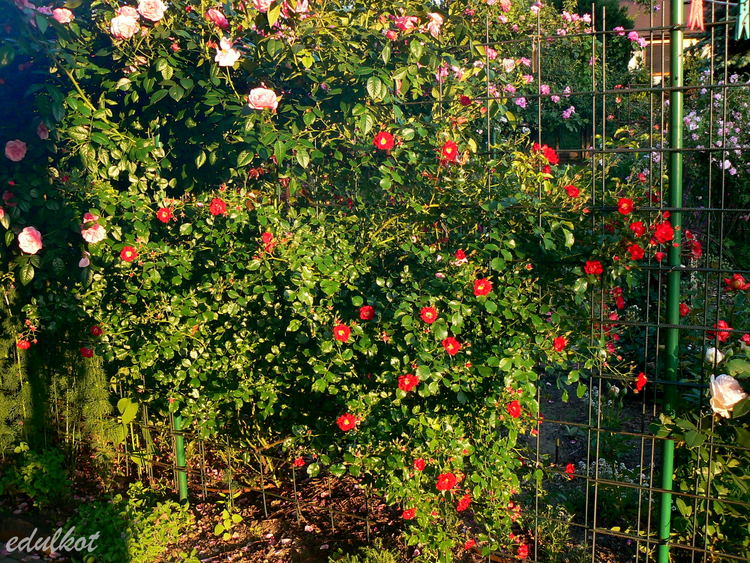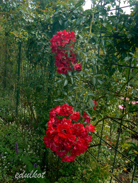 Posadzona przy kratce bardzo szybko pokazała że jest pełna wigoru i potrzebuje dużo więcej miejsca niż deklaruje hodowca. Ponieważ rosła i rośnie na skraju kratki która w końcu została w zeszłym sezonie przedłużona, postanowiłam tylko ją lekko przesunąć i w efekcie obróciłam ją o 180st. podcinając tylko część korzeni. Zniosła to dobrze i dość szybko odbudowała długie pędy.