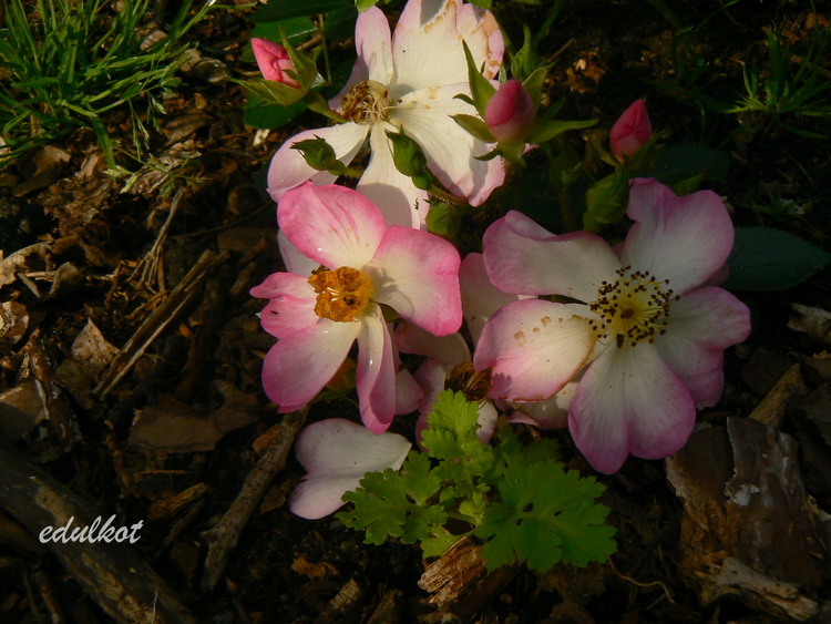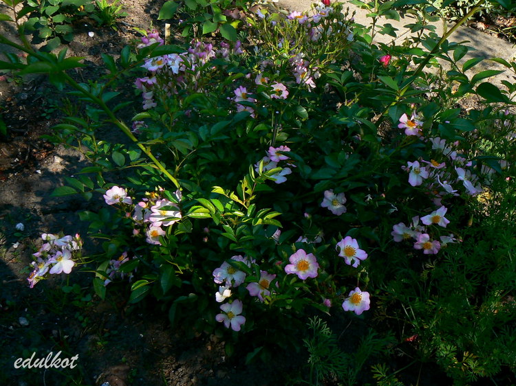 Hodowca: Louis Lens , 1988, Typ: krzew, może być jako okrywowa, Kwiaty: małe, pojedyncze, jasnoróżowe z białym środkiem, żółte pręciki, kwitnie dużymi bukietami cały sezon, Zapach: silny, Liście: ciemnozielone, pędy cienkie, wyginają się, Wielkość: wys. 0,5 m, szer. 0,8 m, Mrozoodporność: 6b,