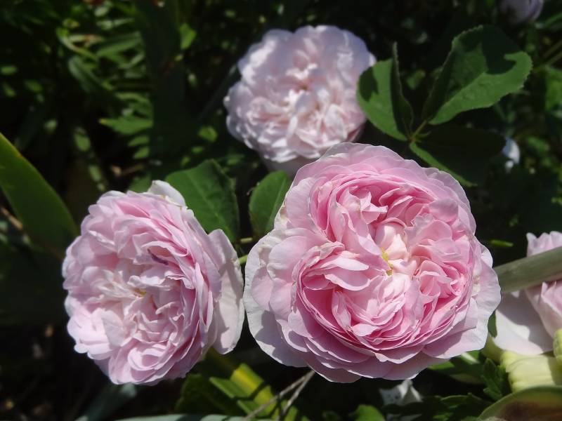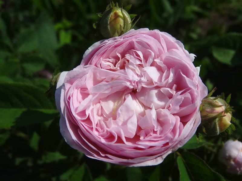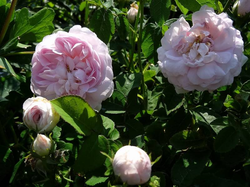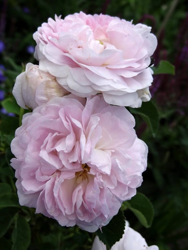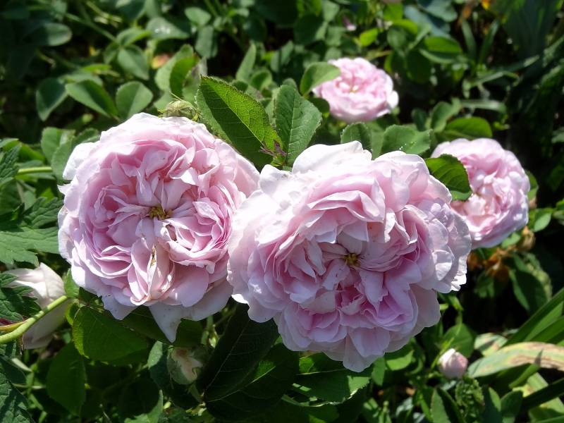 Kwiaty pełne w kolorze jasnoróżowym o średnicy ok. 7 cm. Pachnie. Kwitnie bardzo obficie raz w sezonie.