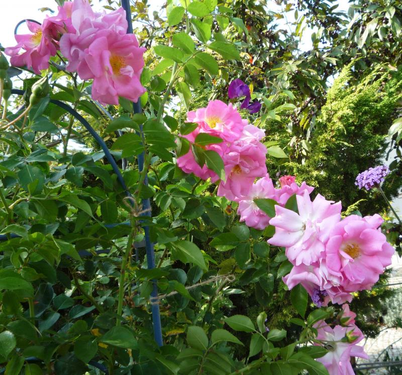 Duże puste kwiaty o różowym kolorze i lekkim zapachu wyglądają na pergoli świetnie a w połączeniu z Laguną nawzajem się uzupełniają.