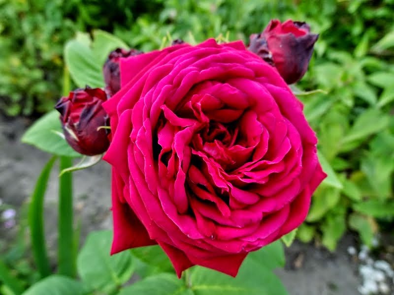 Kwiaty ok. 10 cm. bardzo pełne. Pachnące. Kwitnie w czerwcu i powtarza kwitnienie. Kwiaty zebrane w bukietach na szczycie pędów.